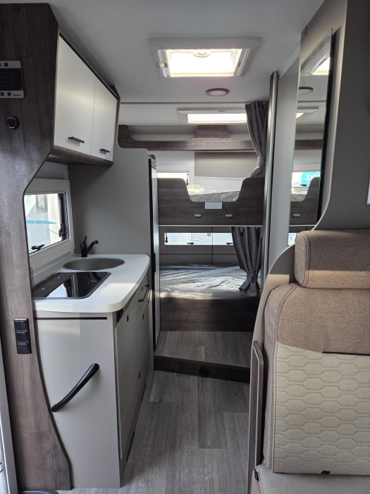 6 PLACES CG 6 PLACES COUCHAGES GRAND SALON 165 CV JANTES 16 POUCES PACK PLUS :Panneau solaire 200W + MPPT Rideaux occultation vitres cabine + Porte cellule XL avec 2points, fenêtre, moustiquaire et poubelle + Housses de cabine + Lumière extérieure LED +Projecteurs halogènes de virage + Radars de recul + Éclairage intérieur au plafond + Stores vénitiens + ISOFIX + Support TV + Pré installation 2ième batterie + Lumineux Skyview + Boîte à gants avec serrure+ Tableau de bord et garnitures « Trend » + Pare chocs et moulures latérales peints dans la couleur de la carrosserie