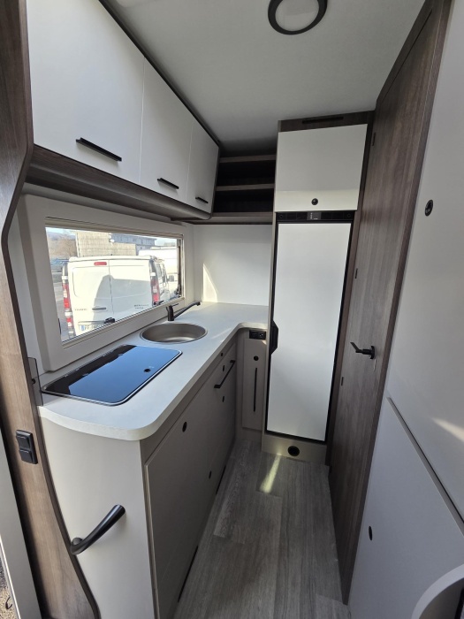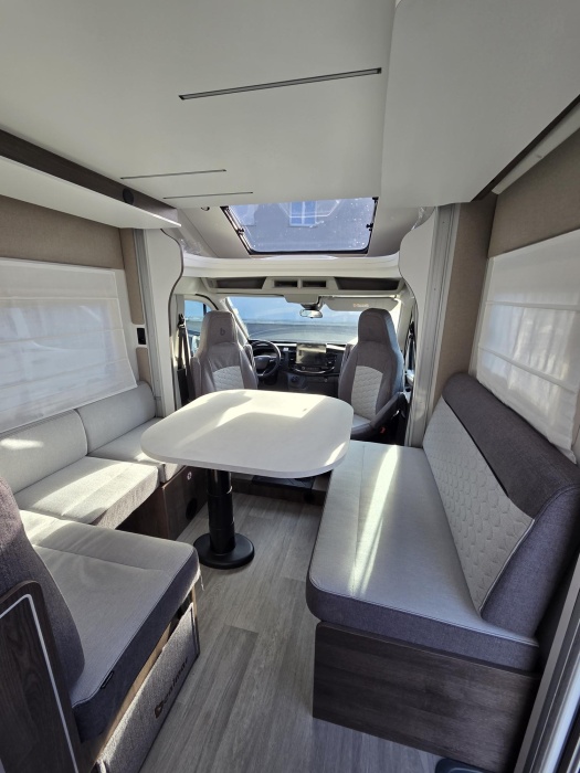 BOITE AUTOMATIQUE 165 CV JANTES 16 POUCES PACK PLUS :Panneau solaire 200W + MPPT Rideaux occultation vitres cabine + Porte cellule XL avec 2points, fenêtre, moustiquaire et poubelle + Housses de cabine + Lumière extérieure LED +Projecteurs halogènes de virage + Radars de recul + Éclairage intérieur au plafond + Stores vénitiens + ISOFIX + Support TV + Pré installation 2ième batterie + Lumineux Skyview + Boîte à gants avec serrure+ Tableau de bord et garnitures « Trend » + Pare chocs et moulures latérales peints dans la couleur de la carrosserie