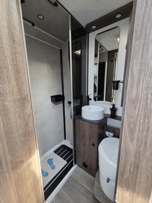 IMMENSE SALON - 6 METRES MOUSTIQUAIRE DE PORTE -DOUCHE ET WC SEPARES - GRAND FRIGO 150L CONGELATEUR ET PORTE 9 BOUTEILLES-WEBASTO