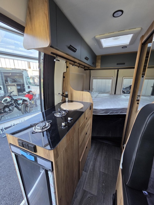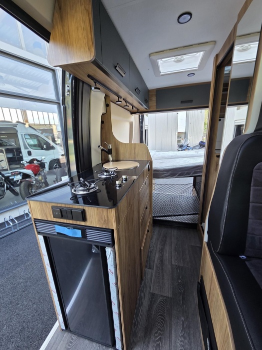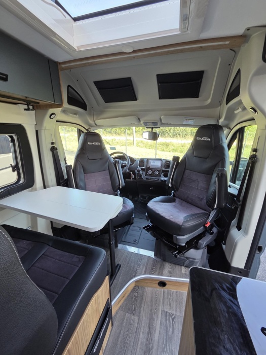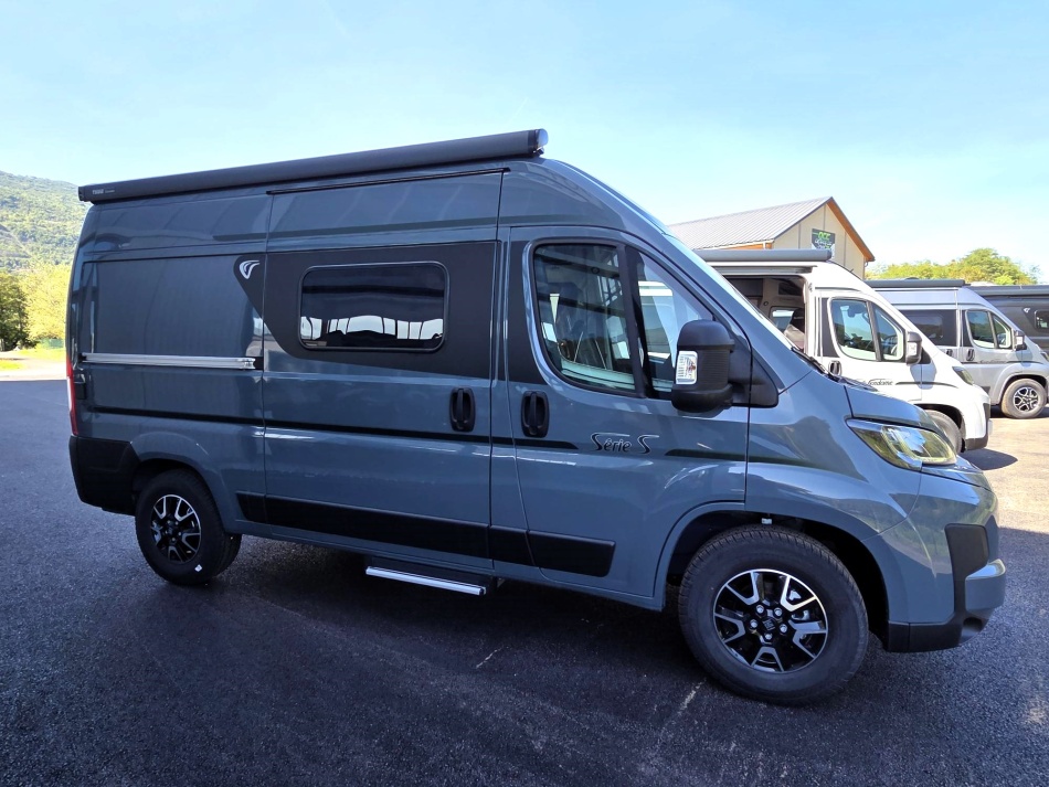 serie S DE SERIE : Climatisation de cabine Commande Radio au Volant et volant cuir , Captain Chairs, Traction+, Rétro Caméra de recul, Jantes Aluminium16’’, Pare-chocs avant peints, Antibrouillards avant, Suspensions Arrières Renforcées, Combi Truma D4 avec kit altitude et commande digitale, Stores plissés de cabine et portes arrières, Moustiquaire de porte latérale